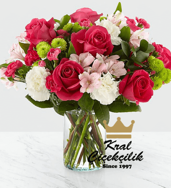 *Çiçekçi Süslemesi ile karışık çiçeklerden oluşan çiçek aranjmanı