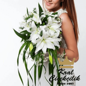 Beyaz lilyum Çiçekli Gelin El Çiçeği