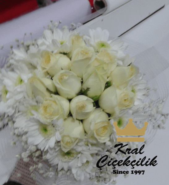 Papatya ve Beyaz Güllü Gelin El Çiçeği En Özel Günlerinizde