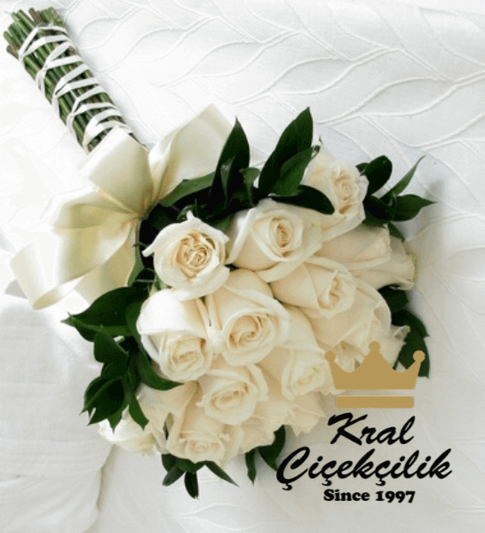 Beyaz Tomurcuklu güller beyaz kurdele ile hazırlanmıştır